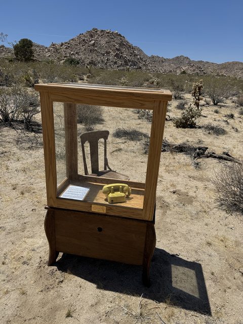 Soms helpt het om hardop te spreken. Ook als er niemand aan de andere kant is. In de woestijn bij Joshua Tree staat een eenvoudige telefoon, op een stille plek. Niet aangesloten. Mensen nemen de hoorn op en zeggen wat gezegd mag worden: ik mis je, het gaat oké, weet je nog… De wind neemt het mee.
