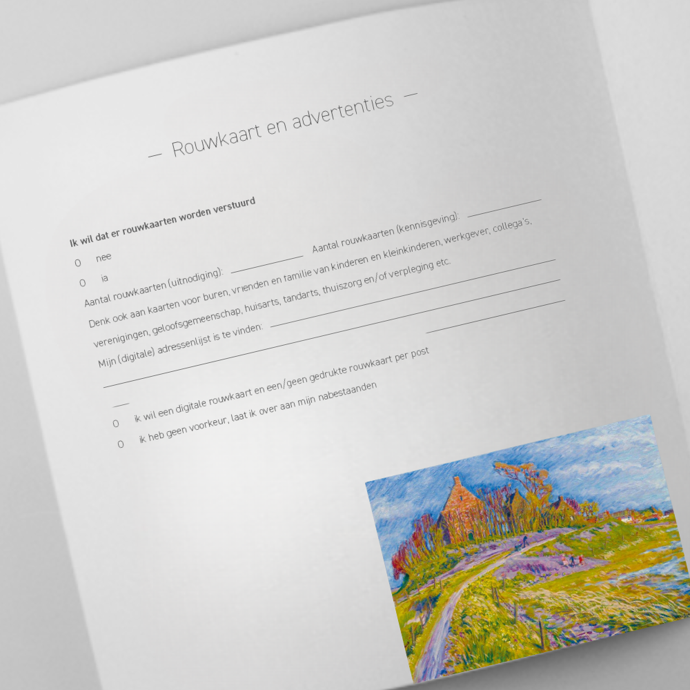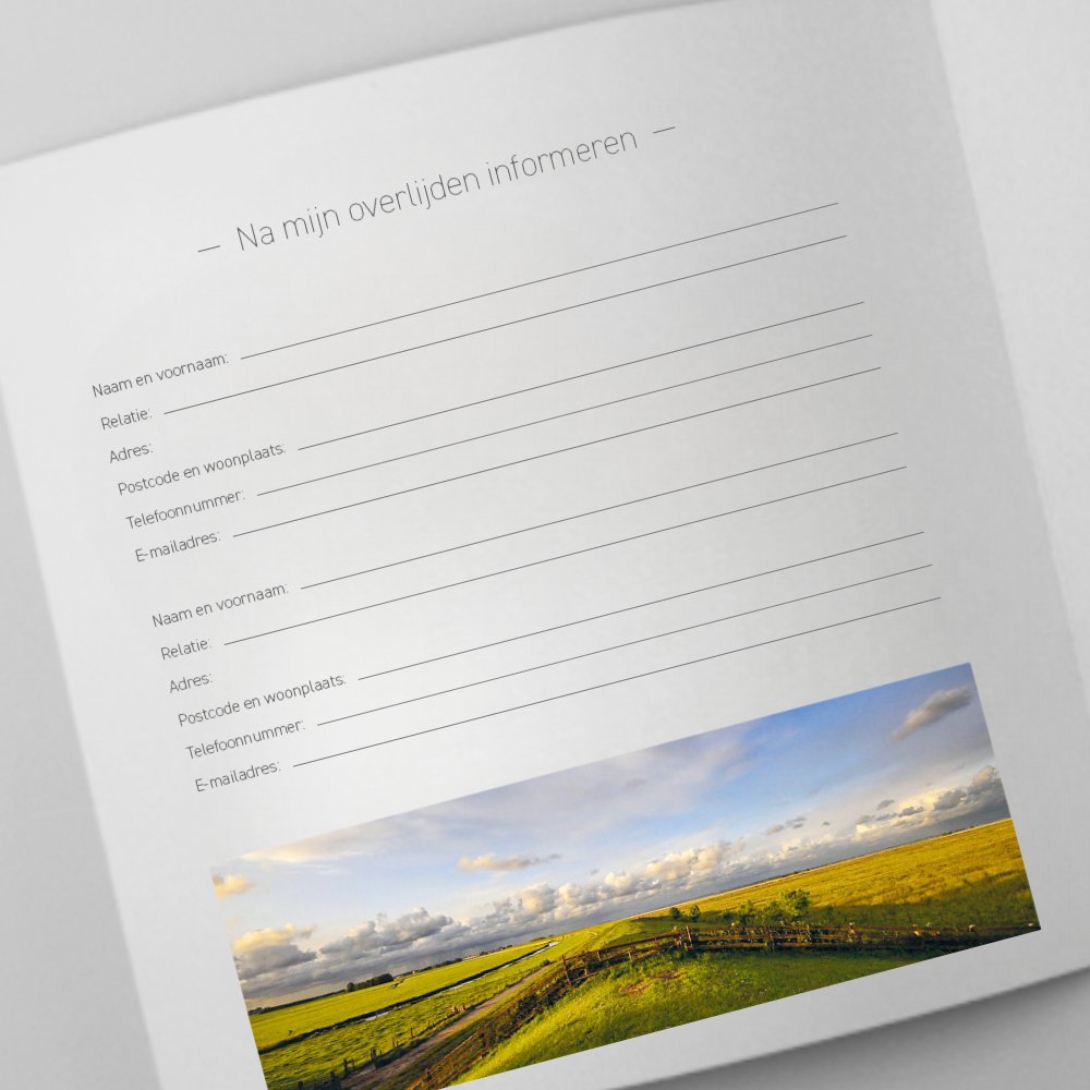 In dit boekje kunt u deze wensen vastleggen. Ook wanneer u geen specifieke wensen heeft, is het fijn voor uw naasten om dit te weten.